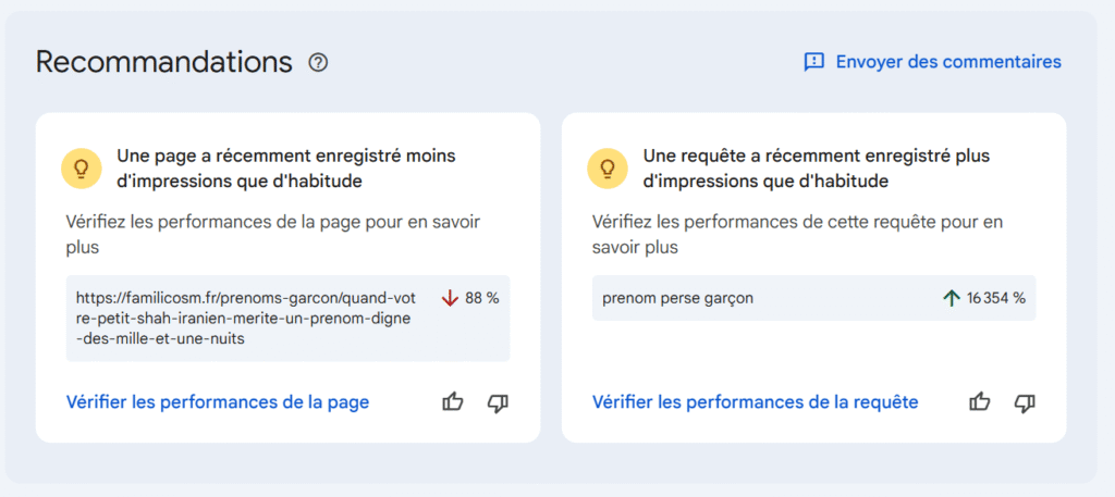 Si vous voyez une ligne qui “se casse” dans Search Console : c’est un signal de mise à jour urgente.